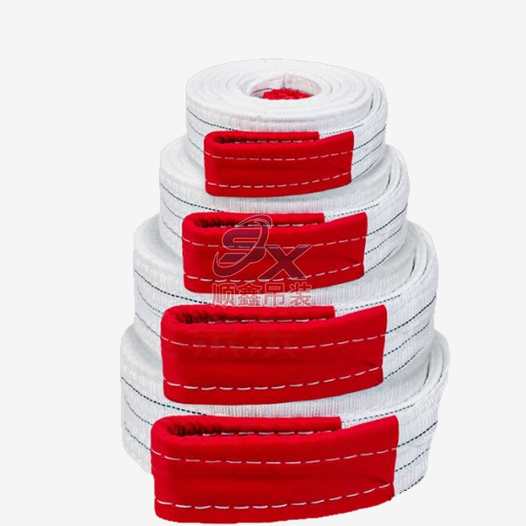 扁平吊帶采用4-8層縫制,整體結(jié)構嚴實,加密針織,工業(yè)縫紉機一次成型,避免多接頭導致拉力不均。加固吊耳,提升耐磨度,不易打滑,提升瞬間緩沖拉力。其接觸面較寬且平整,不易損傷被吊物。